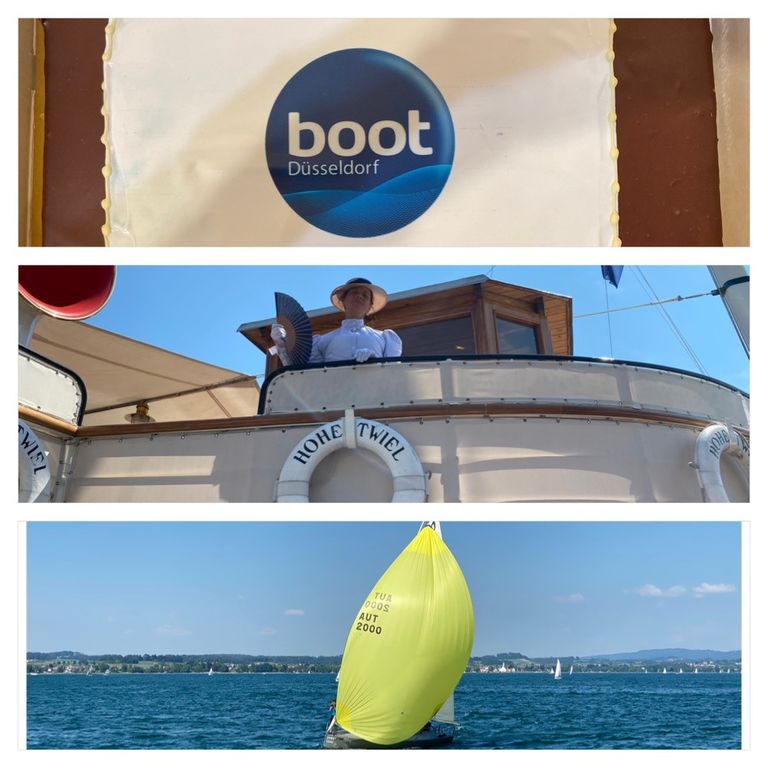 Zur 50. Teilnahme an der BOOT in Düsseldorf gab es 2023 eine Torte und einen Platz auf der Hohentwiel am schönen Bodensee zur dortigen Rundum Regatta.